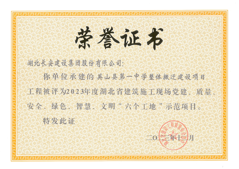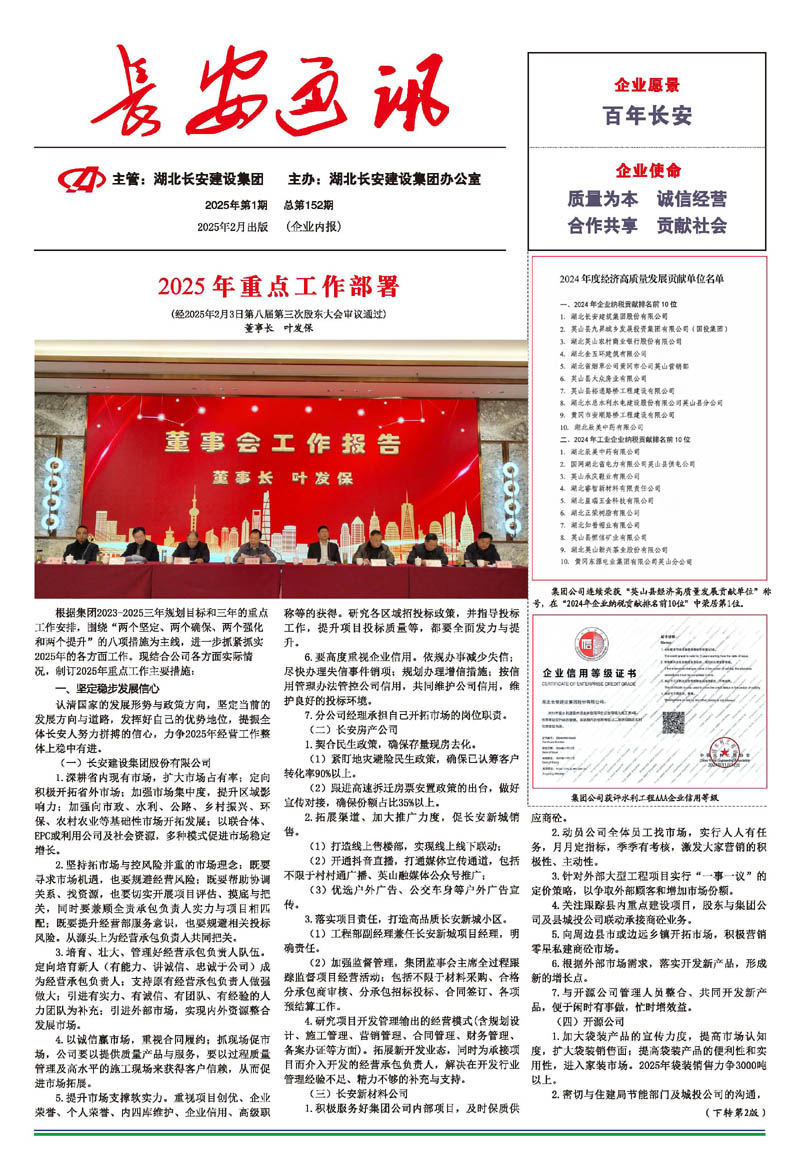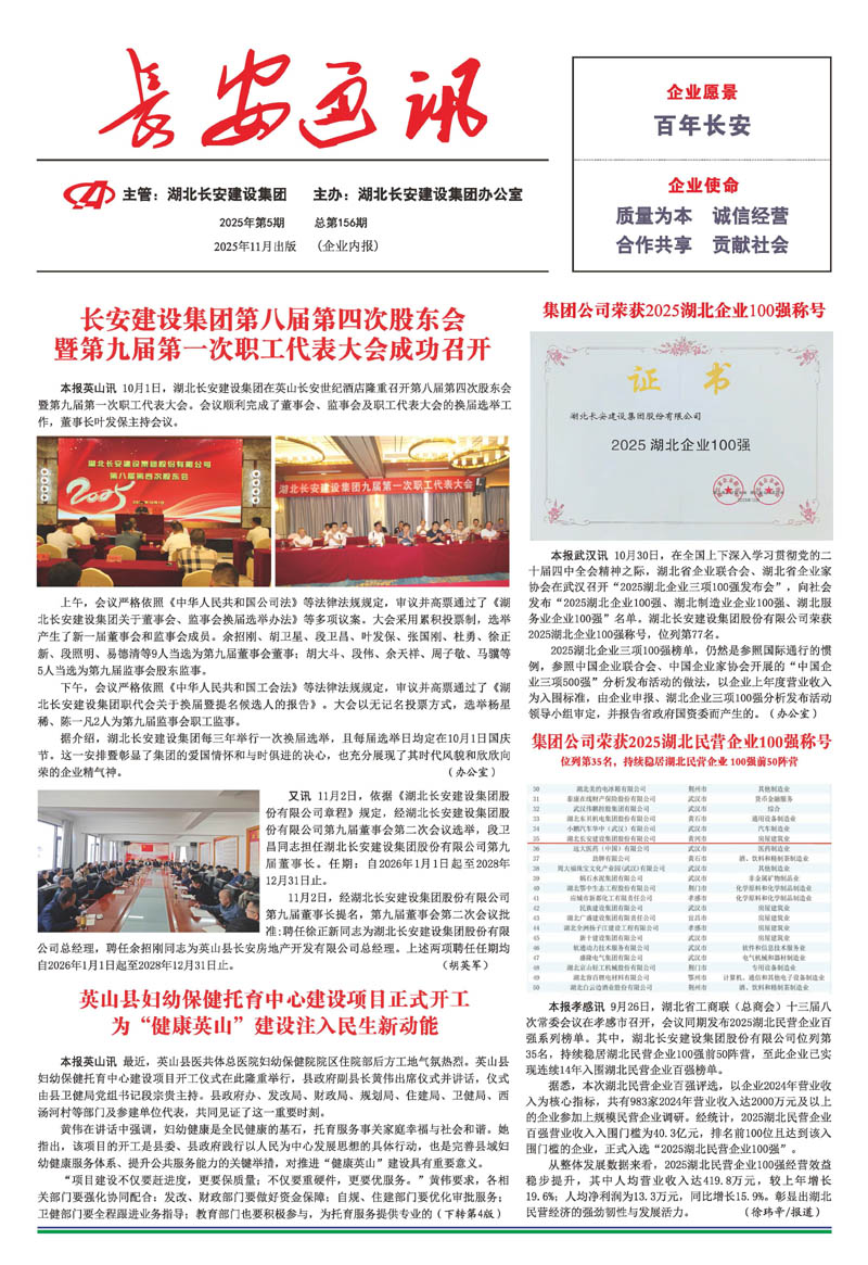 • 2025-09-27 湖北長安建設(shè)集團股份有限公司 榮獲2025湖北民營企業(yè)100強稱號,位列第35名