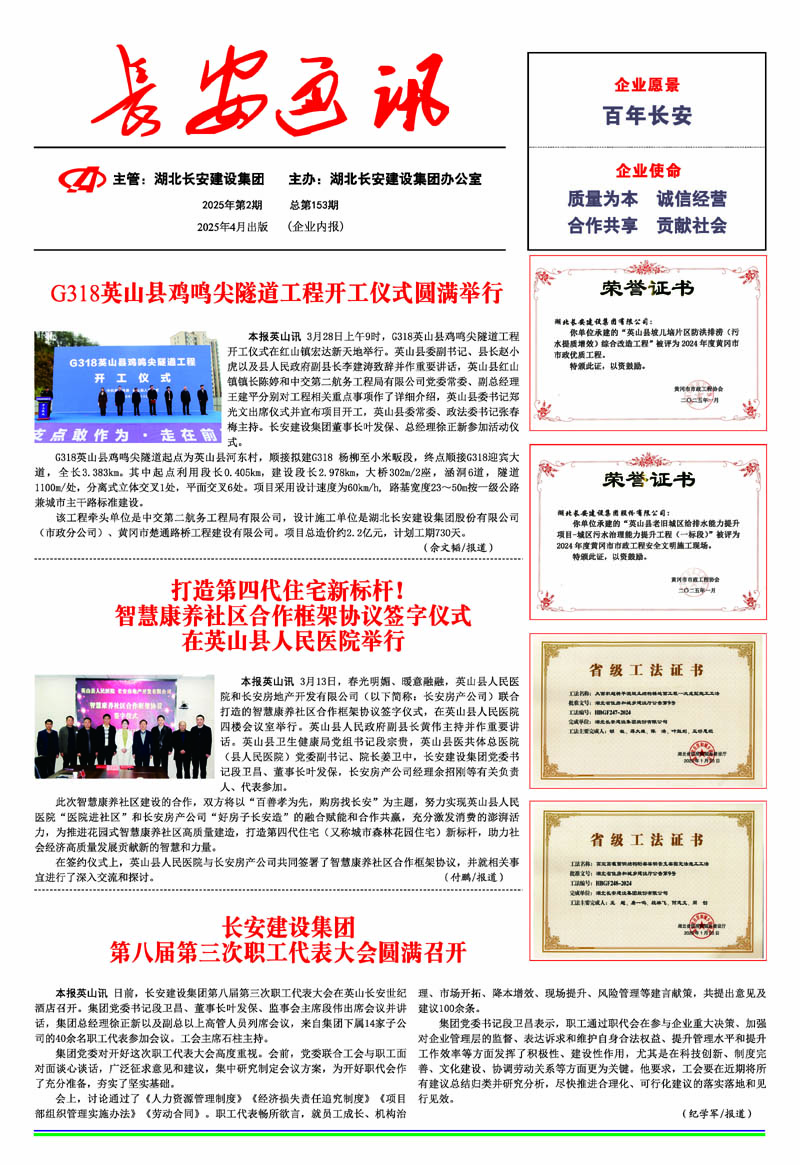 • 2025-11-03 長安建設(shè)集團聘任徐正新同志為湖北長安建設(shè)集團股份有限公司總經(jīng)理、余招剛同志為英山縣長安房地產(chǎn)開發(fā)有限公司總經(jīng)理